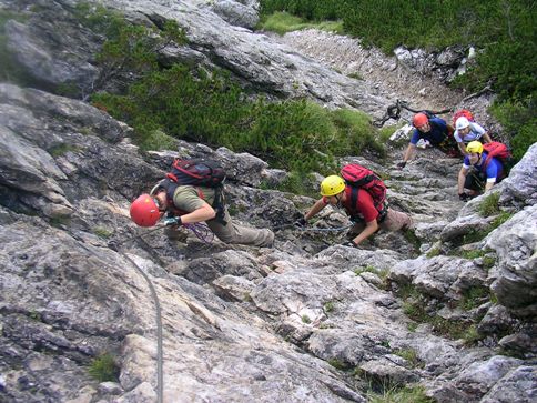 Foto 1: risalito il ghiaione si arriva alla cengia di partenza della ferrata
