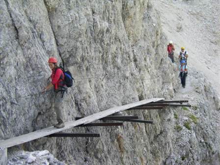 Foto 3: il noto ponte del Dibona sospeso fra le cime