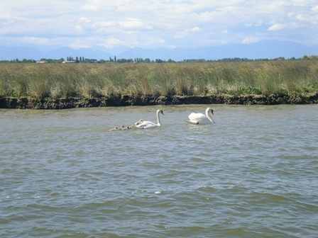 Partiti da Venezia, abbiamo sostato per il pranzo al sacco a Torcello e poi risalito il canale Silone fino alla chiusa di Portegrandi. La laguna era bellissima ricca di uccelli (Aironi, Cormorani, Svassi, Folaghe, Cigni, Cavaliere d’Italia…) e solcata per fortuna da poche imbarcazioni.